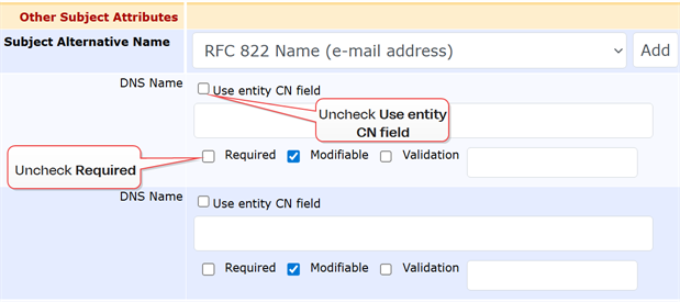 - Scroll down to locate the Subject Alternate Name elements in the Other Subject Attributes section.