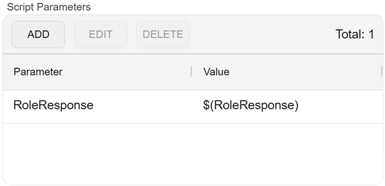 To create this, in the Set Variable Data step add Script Parameters to pull the current value of the ApprovalComments (or equivalent) metadata field, the approval signal comments entered when the approver(s) approve the request, and the full metadata set into the script as shown in Approval Comment Update Example: Add Parameters.
