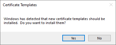 If you have a Microsoft enterprise CA, you can easily create these templates using the Microsoft CA certificate templates MMC snap-in. If you don’t have a Microsoft enterprise CA, you can install the Microsoft Remote Server Administration Tools (RSAT) for Windows (see Add Remote Server Administration Tools) and use the Certificate Templates tool within this to manage templates. When you open the Certificate Templates tool for the first time (you’ll need to open it manually in an MMC or from the command line—certtmpl.msc—it does not appear on the menu), you’ll be offered the option to add the default templates into Active Directory. Doing so will create the necessary starter templates to work from. You can also create the necessary starter templates from the command line using this command: