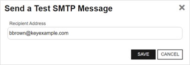 You may test the settings prior to saving them. To test the SMTP settings, click the Test button, enter a valid email address for a mailbox you can open in the Send a Test SMTP Message dialog and click Send. Verify that the test email is delivered.