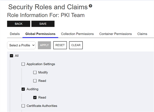 Figure 422: Security Role Showing Auditing Permissions Setting
