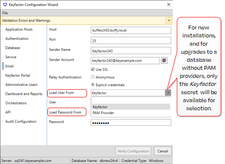 The specific secret value Note: For new installations and for upgrades to a database without PAM providers only the Keyfactor Secret will be available for selection.