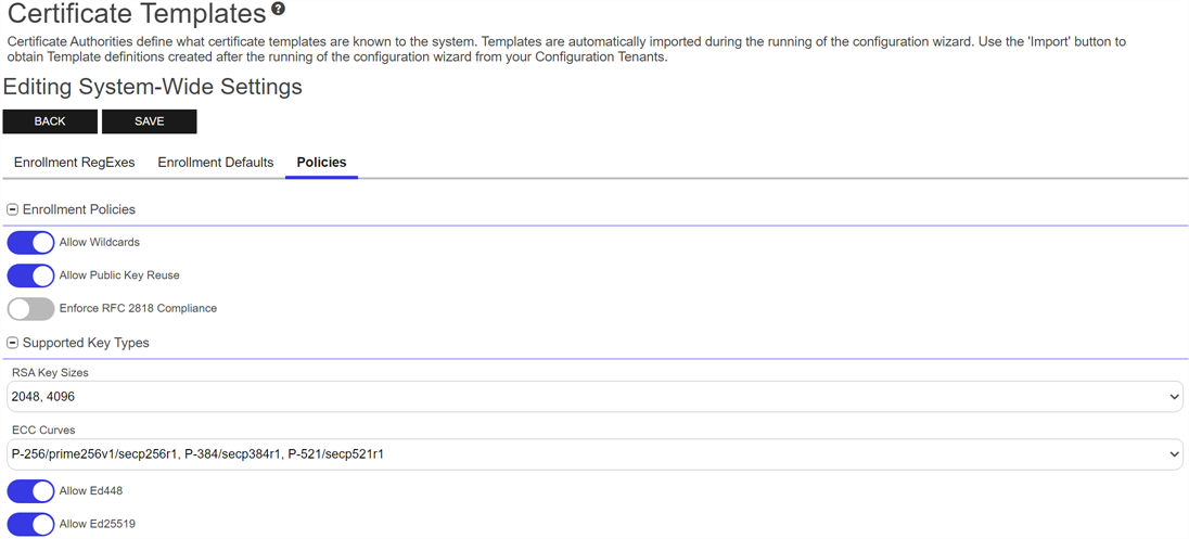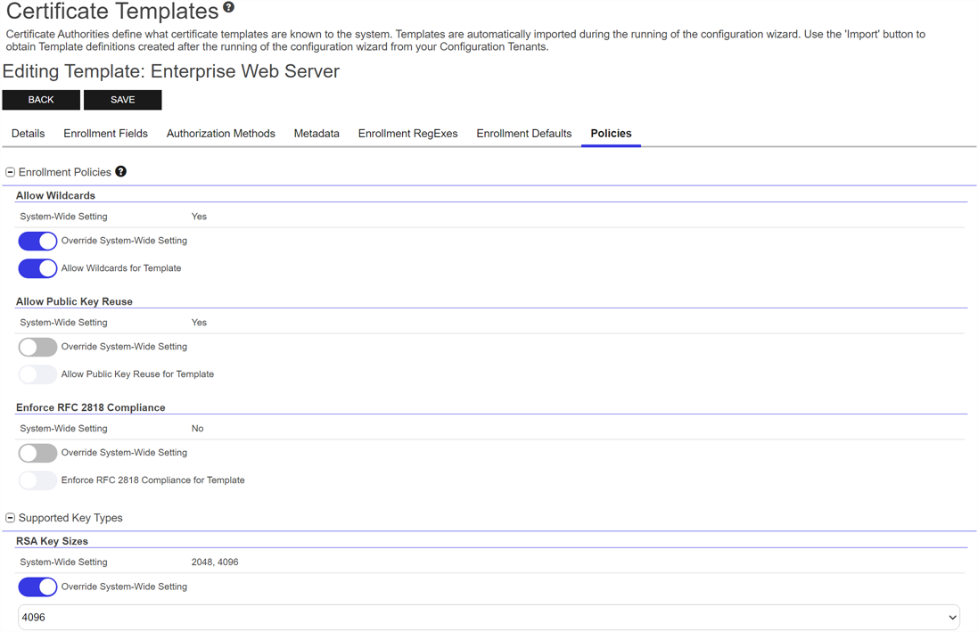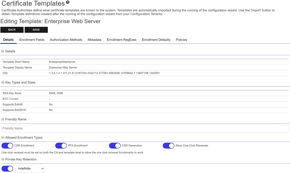 Although templates are imported from their source, there are multiple Keyfactor Command-specific settings that can be configured on the templates to allow them to be used within the product.