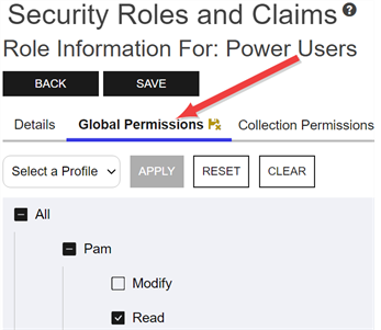 Permissions on PAM can be controlled at two levels—system-wide and on a provider-by-provider basis. When designing a PAM permission scheme, you may use entirely system-wide permissions or you may use a combination of system-wide permissions and provider-level permissions. Both system-wide and provider-level permissions are configured through Security Roles (see Security Role Operations).