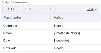 To create this, add Script Parameters to pull the additional attributes into the script as shown in Figure 203: Additional Attribute Update Example: Add Parameters