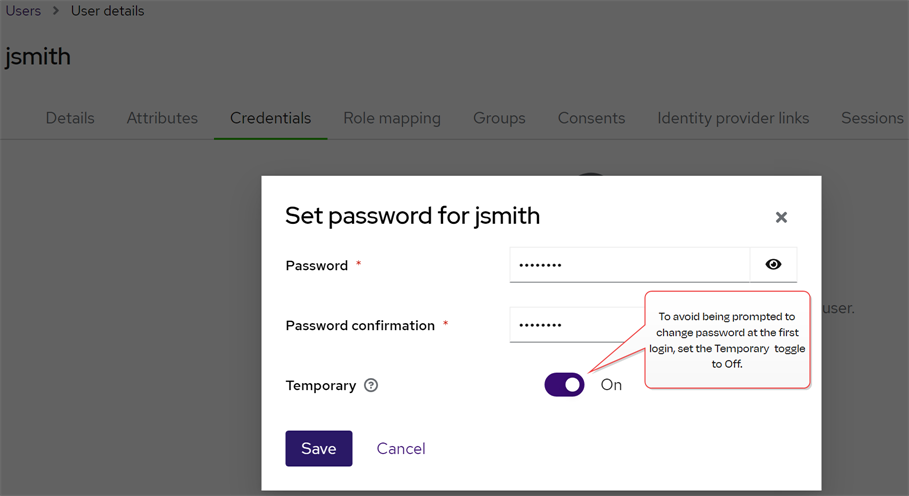 11. In the user details on the Credentials tab, click Set password and set a password for the new user.