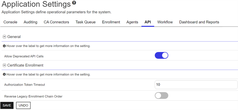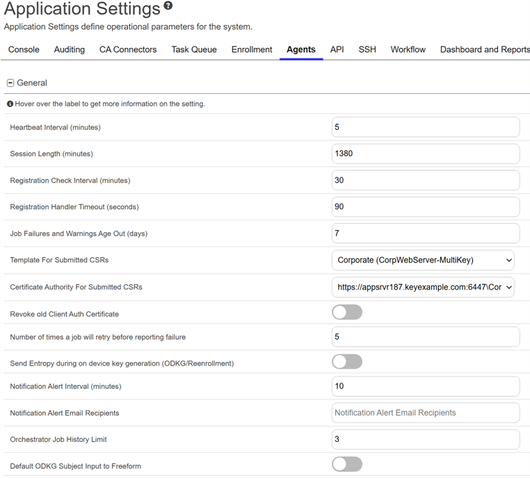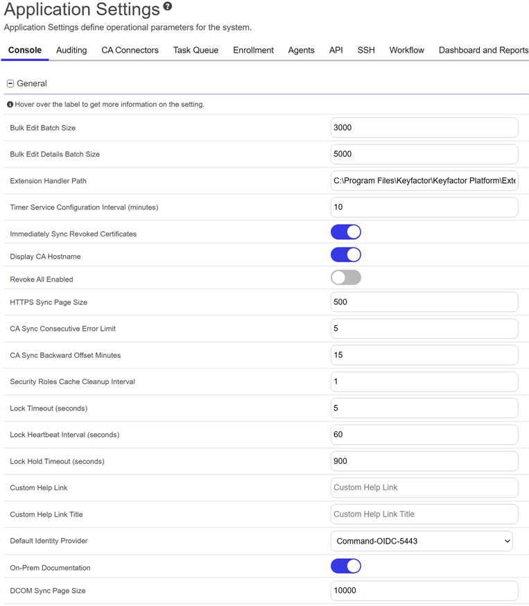 Depending on your Keyfactor Command license, not all application settings may be applicable in your environment.