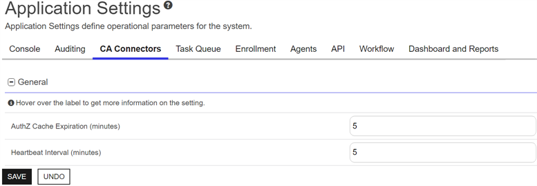 Application Settings: CA Connectors Tab