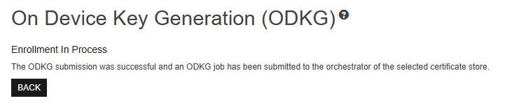 Tip:  Click the help icon () next to the ODKG - On Device Key Generation page title to open the Keyfactor Software & Documentation Portal to this section. You will receive a prompt indicating: