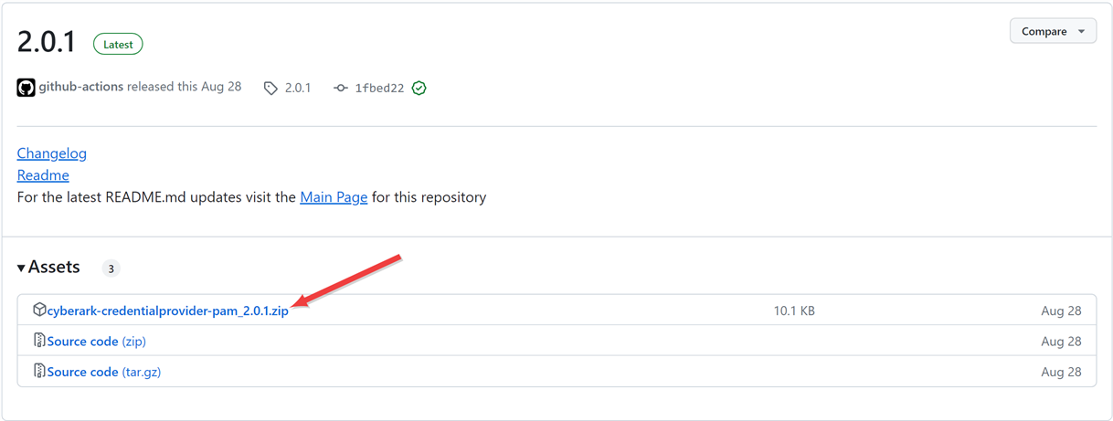 On the GitHub version page in the Assets section, click the package name to download the zip file.