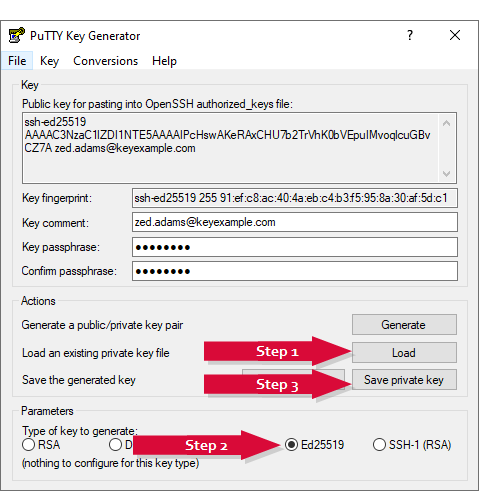 Click Load and browse to locate the downloaded private key. This key is named something like SSH-Key-KEYEXAMPLE-zadams.identity.