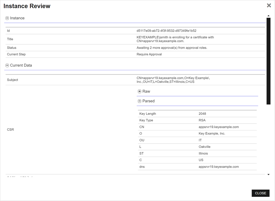 An API is a set of functions to allow creation of applications. Keyfactor offers the Keyfactor API, which allows third-party software to integrate with the advanced certificate enrollment and management features of Keyfactor Command. request as part of the request flow, you may find yourself on the Workflow Instances page needing to manage the instances.