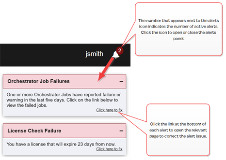Some system alerts are global and will appear on the system alerts panel regardless of where you are in the Management Portal. Other system alerts (such as some related to SSL scanning) are specific to a particular Management Portal page and will only appear when you are on that page.