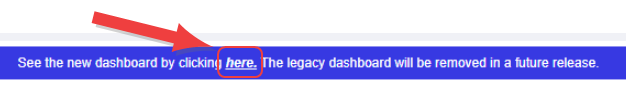 The legacy dashboard can be accessed by clicking the link at the bottom of either the default dashboard or the new dashboard.