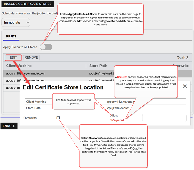 Certificate Stores > Schedule