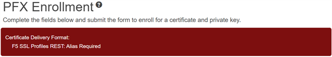 Tip:  Click the help icon () next to the PFX Enrollment page title to open the Keyfactor Software & Documentation Portal to this section. You will receive a prompt indicating: