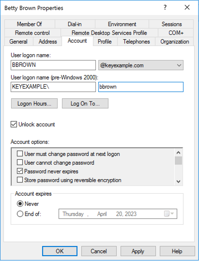 The results for the above user with the setting as false would be: bbrown@keyexample.com.