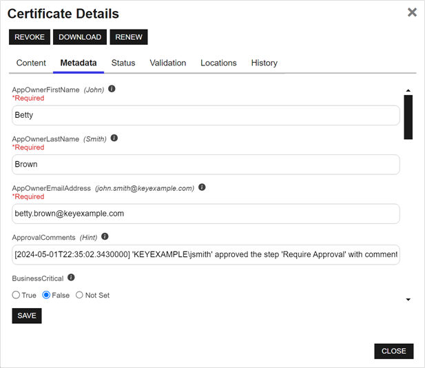 You may reference the updated comment using the standard revocation comment token ($(cmnt)) in subsequent steps in your workflow and may view the updated comment wherever the revocation comment is available for viewing within Keyfactor Command.