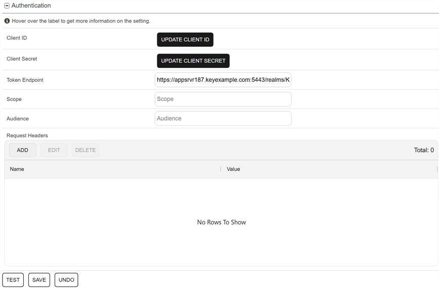 • Audience: An audience value to be included in token requests delivered to the identity provider when making a token request.