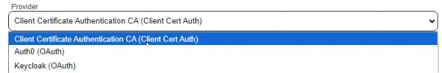 Tip: The provider name is defined as either Client Certificate Auth or the -IdentityProviderName parameter provided to the PowerShell install script.