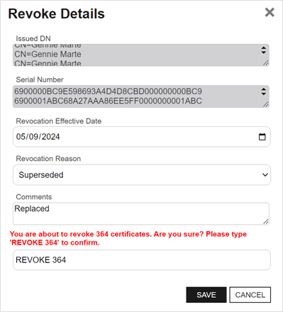 A hold can also be placed—or removed—through Revoke by choosing Certificate Hold/Remove from Hold under Revocation Reason. When multiple rows are selected, only the following operations remain available on both the grid header and the context menu: Edit, Delete, Delete and Exclude, Revoke, and Delete Private Key. For edit commands, only the metadataClosed Metadata provides information about a piece of data. It is used to summarize basic information about data, which can make working with the data easier. In Keyfactor Command, the certificate metadata feature allows you to create custom metadata fields that allow you to tag certificates with tracking information about certificates. fields can be modified.
