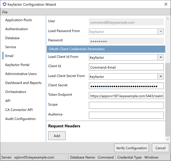 3. At the bottom of the Keyfactor Command Configuration Wizard dialog, click Verify Configuration.