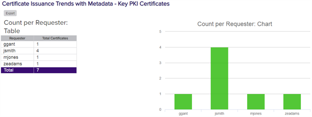 Figure 87: Certificate Issuance Trends with Metadata: Metadata Table and Chart