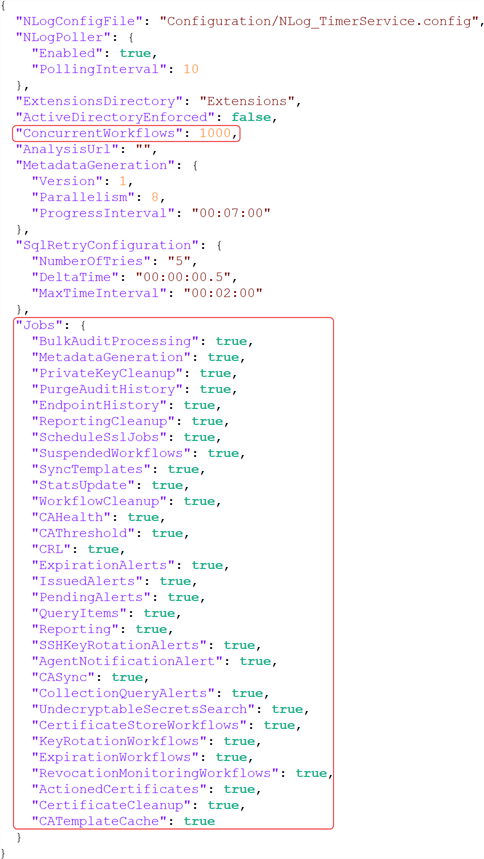 Figure 498: Appsettings.json File for Keyfactor Command (Timer) Service Settings
