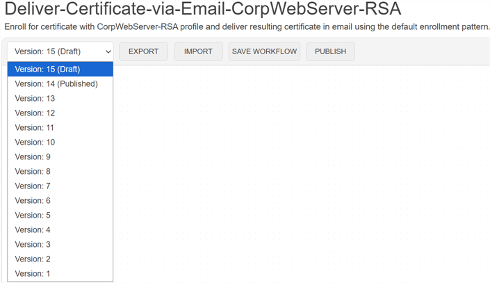 Tip:  There are two built-in workflow definitions—Global Enrollment Workflow and Global Revocation Workflow—that are used to manage enrollment and revocation requests which are not otherwise handled by custom workflows. These workflows can be configured with steps (see Workflow Step Configuration), but they cannot be deleted. There are no built-in workflow definitions for other types of workflows. These actions only go through workflow if you create custom workflows for them.