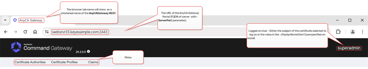 Claims—Define the certificates or OAuth claims which authenticate users to the AnyCAGateway REST and what permissions are associated with them.