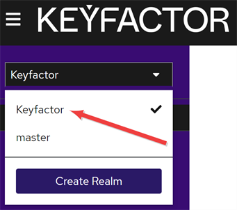 In the Keyfactor Identity Provider Administration Console, select Keyfactor in the realm dropdown.