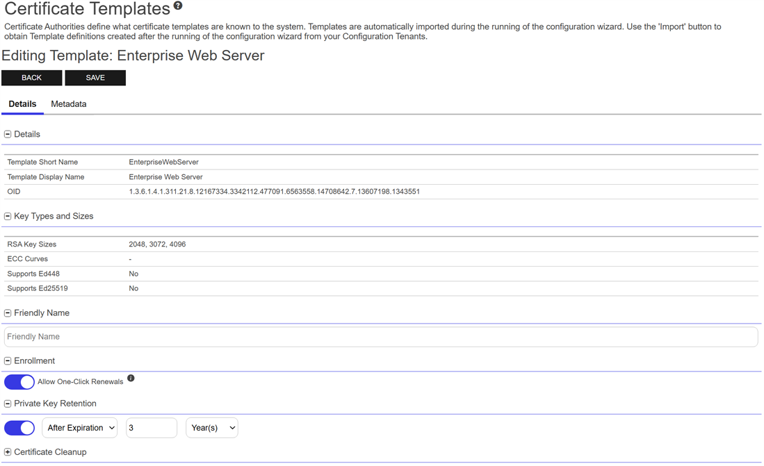 Although templates are imported from their source, there are Keyfactor Command-specific settings that can be configured on the templates to allow them to be used within the product.