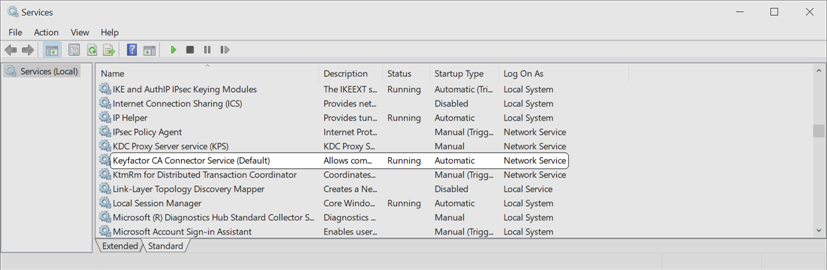 A certificate authority (CA) is an entity that issues digital certificates. Within Keyfactor Command, a CA may be a Microsoft CA or a Keyfactor gateway to a cloud-based or remote CA. Connector Client server and controls CA Connector Client communications with the Keyfactor Command server and the on-premises CA(s). During the configuration process you set the service account under which the CA Connector Client service will run. The service should start automatically at the conclusion of the installation. To check to see if it’s running and start it if necessary, follow the directions below for your installation type.