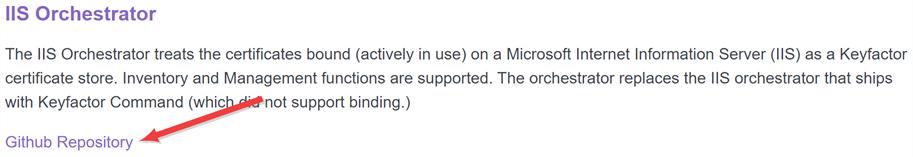 - On the main extension GitHub page, review the documentation for the specific extension. Here you will find supported platforms, prerequisites, and extension-specific installation and configuration instructions. The below instructions only cover where to place the extension files on the orchestrator and building custom manifest.json files (changes to which aren’t needed for extensions from GitHub unless you are customizing something), but not the details for creation of custom certificate store types for the extension or any other customization specific to a given extension.
