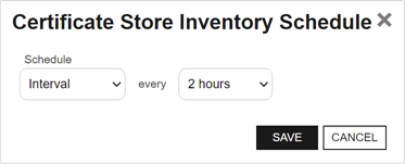 In the Certificate Store Inventory Schedule dialog, select a schedule for the store(s). The choices are: