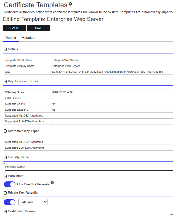 Although templates are imported from their source, there are Keyfactor Command-specific settings that can be configured on the templates to allow them to be used within the product.