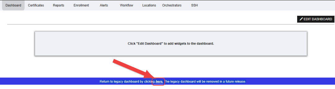 Tip:  There is a link at the top of the legacy dashboard to redirect you to the new dashboard.