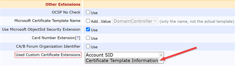 To operate correctly with Keyfactor Command, the profiles in EJBCA will need to be configured to not expect extension data. If you’re using the the Keyfactor Windows Enrollment Gateway and wish to do direct enrollments in Keyfactor Command for your EJBCA CA as well as through the Keyfactor Windows Enrollment Gateway, you will need a separate set of certificate profiles in EJBCA that are not configured to expect extension data with the request to use for direct enrollment from Keyfactor Command.