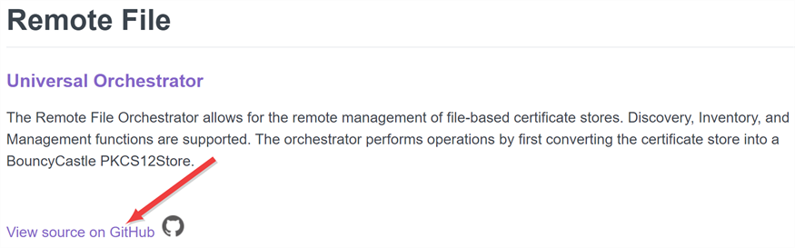 - On the main extension GitHub page, review the documentation for the specific extension. Here you will find supported platforms, prerequisites, and extension-specific installation and configuration instructions. The below instructions only cover where to place the extension files on the orchestrator and building custom manifest.json files (changes to which aren’t needed for extensions from GitHub unless you are customizing something), but not the details for creation of custom certificate store types for the extension or any other customization specific to a given extension.