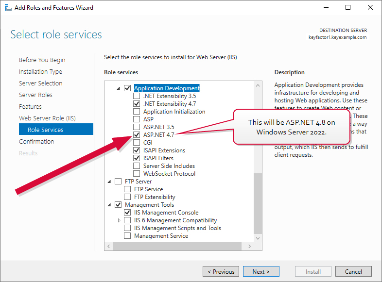 Important:  Do not install the IIS WebDAV Publishing feature. Keyfactor Command will not operate correctly if this feature is installed.