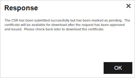 Note:  If you attempt to complete a CSR enrollment using a CSR generated within Keyfactor Command, you will receive a Confirm Operation message requiring you to click OK to confirm and enroll unless the Enable warning for CSR generated in Command application setting has been disabled.
