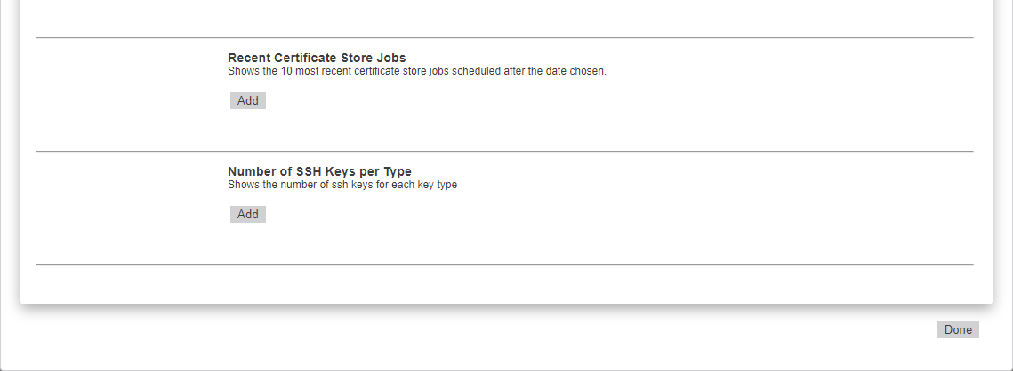 Keyfactor orchestrators perform a variety of functions, including managing certificate stores and SSH key stores.-by-orchestrator basis on the SSL Orchestrator Job Status panel. The orchestrators to include are configurable. See Dashboard: SSL Orchestrator Job Status. - The Number of SSH