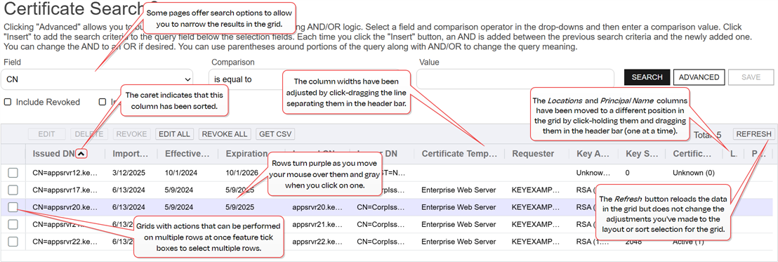 In addition to the main URL, the pages in the Management Portal are available via deep link. To find the deep link for a page, visit the page in your browser and copy the URL from the browser’s URL line. For example, the deep link URL directly to the certificate search page in the Management Portal is available at: