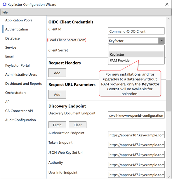 The component uses OAuth for authentication even if you've opted to use Active Directory authentication for the remainder of your Keyfactor Command installation, and therefore requires an OAuth 2.0 compliant implementation. You may choose to install Keycloak if you do not have an alternate provider (see Installing Keycloak).