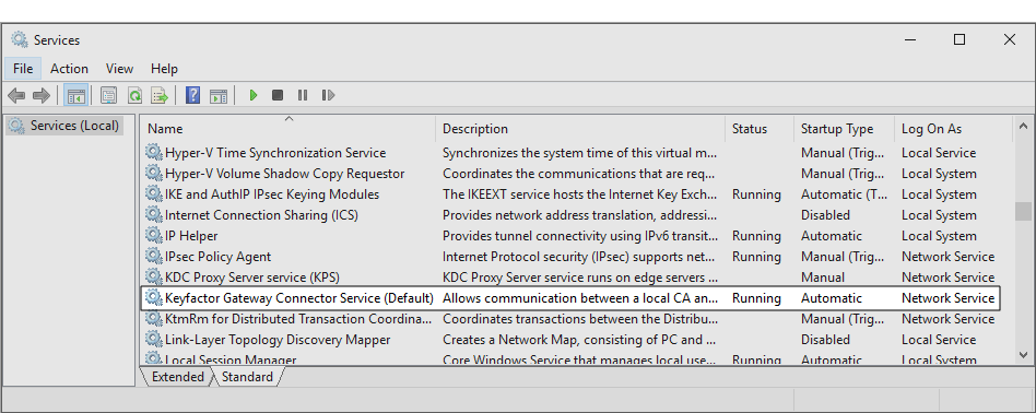 - On the Keyfactor Remote CA Gateway Connector server, open the Services MMC.